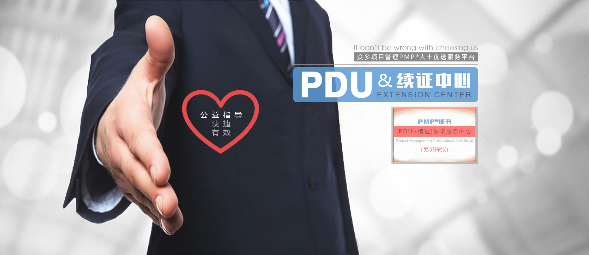 上海易卓公司響應PMI?持續發展報告趨勢,為全國廣大PMP?認證持有人,提供有效便捷的PDU積累和快捷續證服務。 從而幫助他們持續保持項目管理專業人士的身份象征。通過多方案解決持續保持后續PDU學習發展訴求和 工作實踐提升,并協助他們快速完成PMP?續證,從而一站式使之更有效保障持證效力和自身職業競爭力!