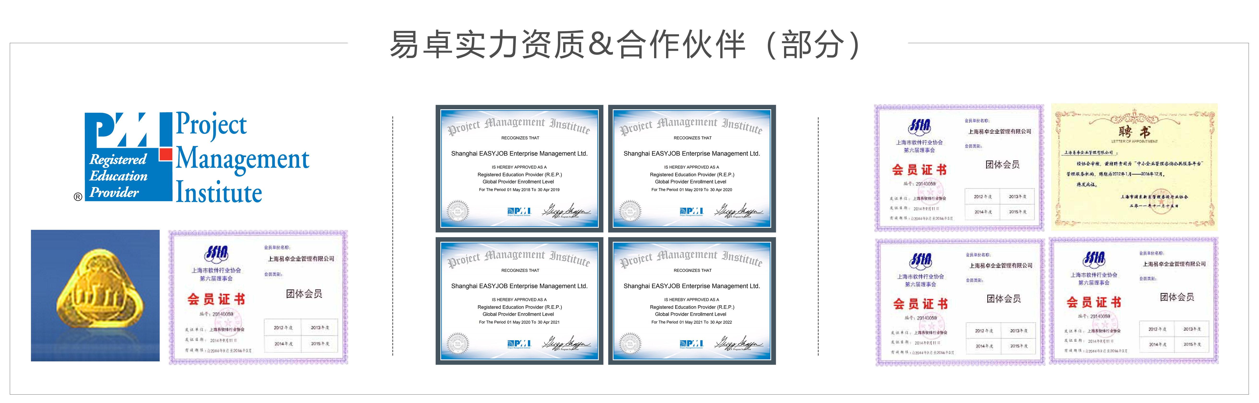 上海易卓公司本著專注、創新、整合、共贏、可持續發展的經營理念,傾力打造并致力于解決企業和職場人士對項目管 理、項目化管理、PMP?系列認證和贏在職場修煉的學習、分享、交友、發展、提升等方面的公益訴求。易卓多年的誠 摯服務經驗積累和眾多知名企業及職場人士的大力支持,共同鑄就這一增值服務與共享共贏的互動社區。